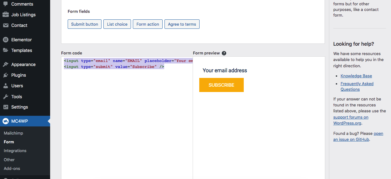 MailChimp Form Markup for Widget